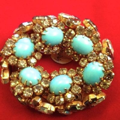 • Schoffel & Co 1950s Turquoise & Rhinestone cluster Brooch