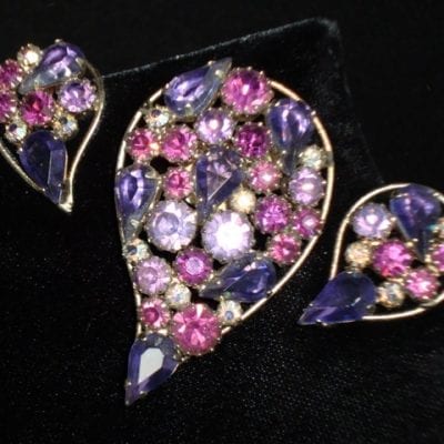 • 1950’s Multi Purple glass Brooch & Earrings – SOLD