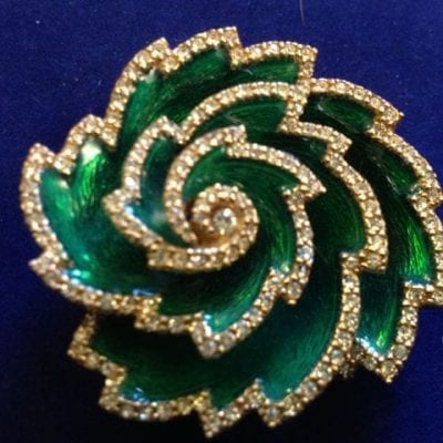 Ciner 1950’s – 1960’s Green Enamel & Rhinestone Brooch – SOLD