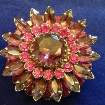 Sherman 1950’s Pink Brooch with Aurora Borealis stones – SOLD