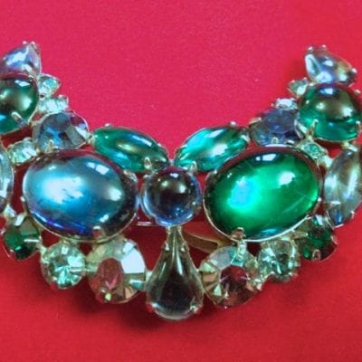 Vendome Aurora Borealis Stones Green/Blue Articulated Brooch 1950s -SOLD