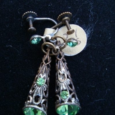 1930’s Neiger Brothers – Czech Green Screw Earrings – SOLD