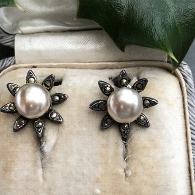 1930s Pearl Marcasite Earrings – SOLD