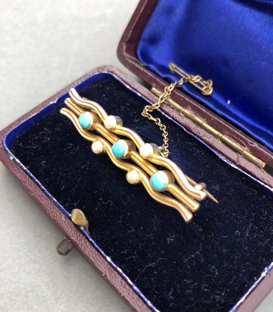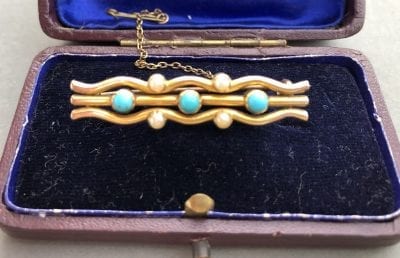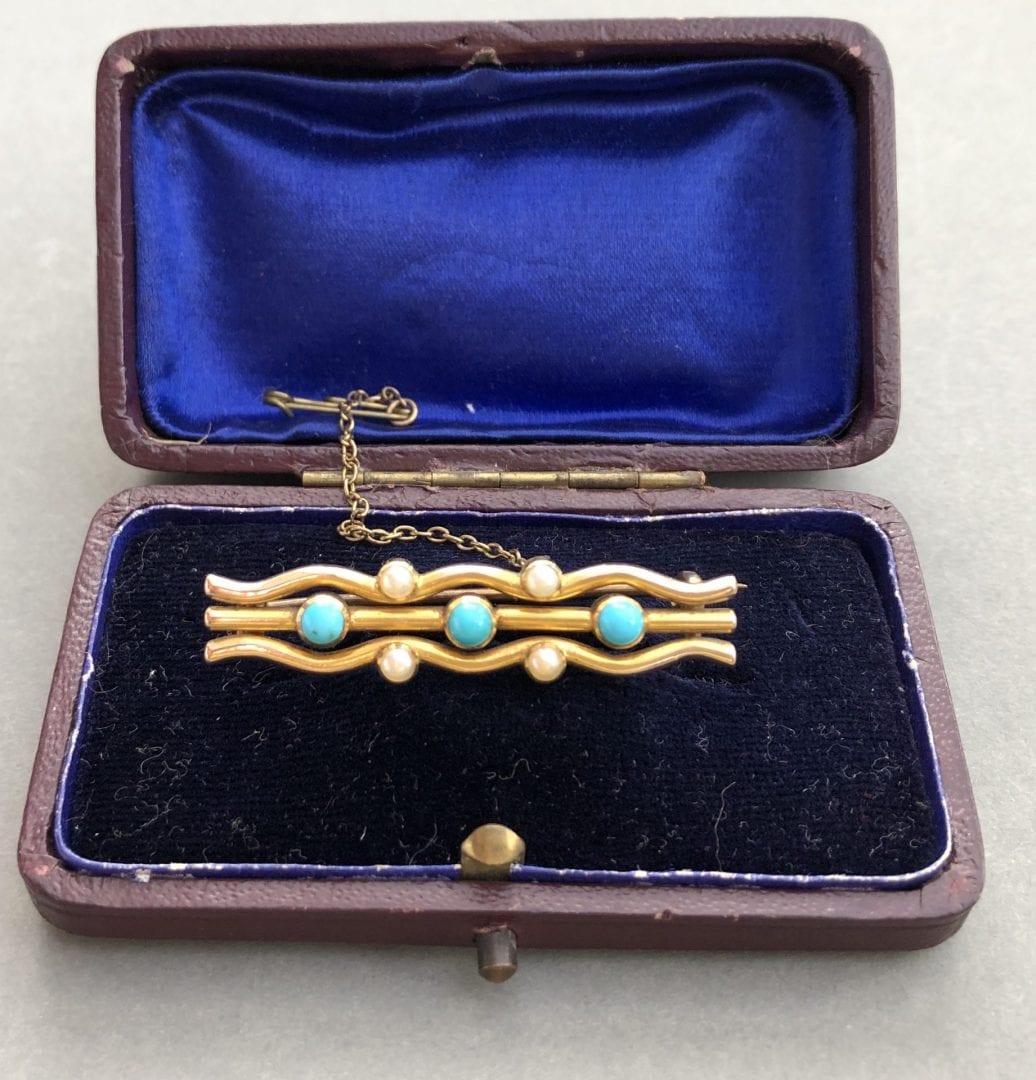 Antique Victorian Turquoise and Pearl 15ct Gold Brooch – SOLD