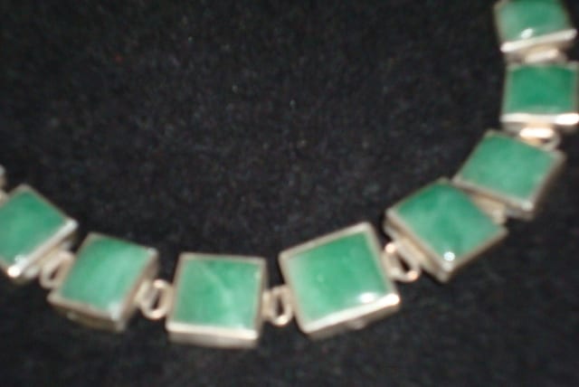 1920s Silver Aventurine Bracelet. Beautifully made Vintage Art Deco green bracelet, the reverse is as attractive as the front.