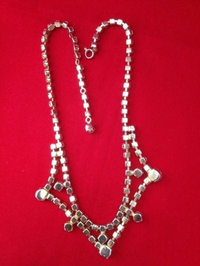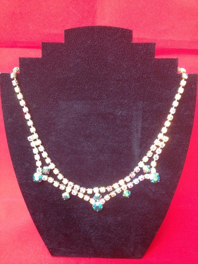 1940-1950 Vintage Green and Aurora Borealis glass necklace.