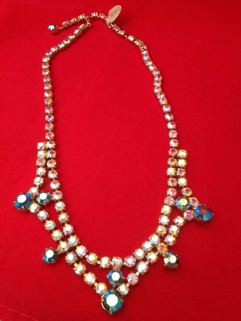 1940-1950 Vintage Green and Aurora Borealis glass necklace