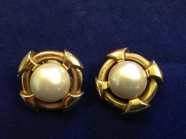 Beautiful ivory pearl clip on earrings on gold tone. Excellent condition signed on the clip. Size: approx just over 1/2″ diameter.