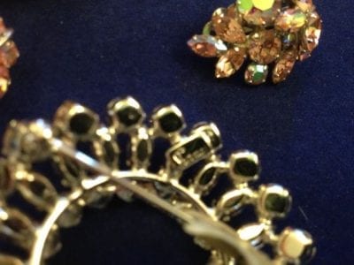 Sherman 1950’s brooch ONLY (I’m afraid the earrings are sold). Also see a matching bracelet listed separately, they were purchased together. Excellent vintage condition.