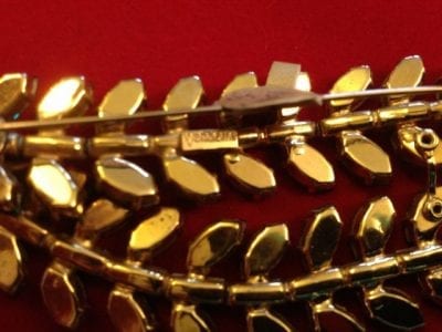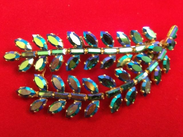 Signed Vendome – Aurora Borealis Stones- Green/Blue Articulated Brooch – 1950s – this brooch is jointed so it isn’t flat but curves outwards, fabulous colours, mirrors what you wear, all the stones are the same colour.