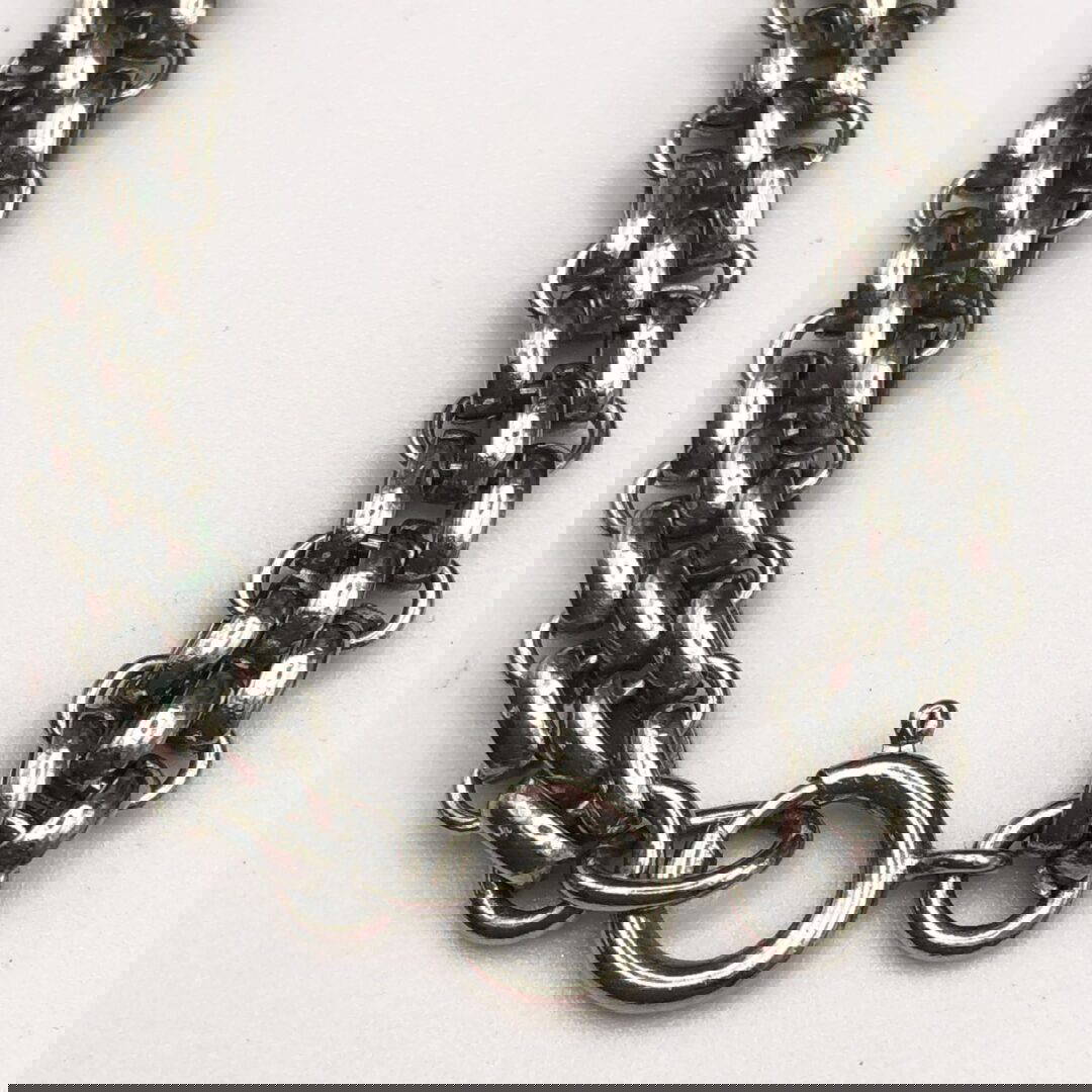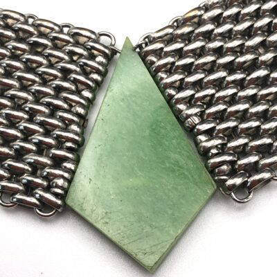 Size: Necklace is 18″ long, end to end. The panel down the front is 1 1/2″, and the 2 diamond panels are just under 1″ in length..
