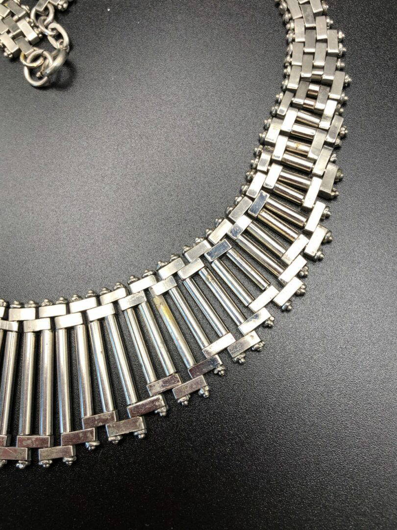 Size: Necklace is 16″ long, end to end. The centre width of the necklace is 1 1/4″.